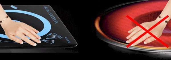 Bếp từ sử dụng cảm ứng từ để làm nóng nồi chảo có đáy bằng kim loại có từ tính. Khi đun nấu sẽ không tạo ra ánh sáng, không làm nóng mặt bếp nên bạn có thể chạm tay vào bếp mà không sợ bị bỏng.