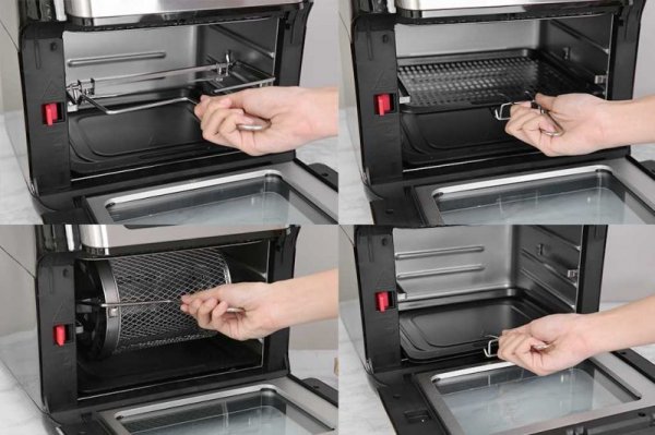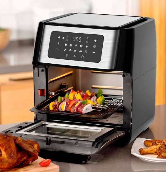 Sản phẩm có bảng hiển thị màn hình cảm ứng hiện đại, sang trọng và dễ dàng điều khiển với 10 chức năng nấu bao gồm: chiên khoai tây, nướng thịt, nướng cá, nướng tôm, nướng pizza, nướng đùi gà, nướng bánh, nướng gà quay nguyên con, sấy hoa quả và rã đông thực phẩm. Người dùng có thể chọn chức năng phù hợp với từng món ăn chỉ bằng một nút chạm.