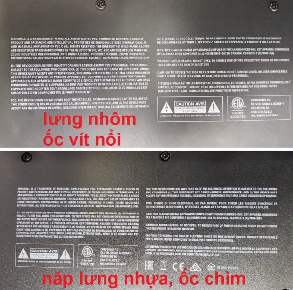 Phân biệt dựa trên vật liệu và in ấn phía sau loa Marshall