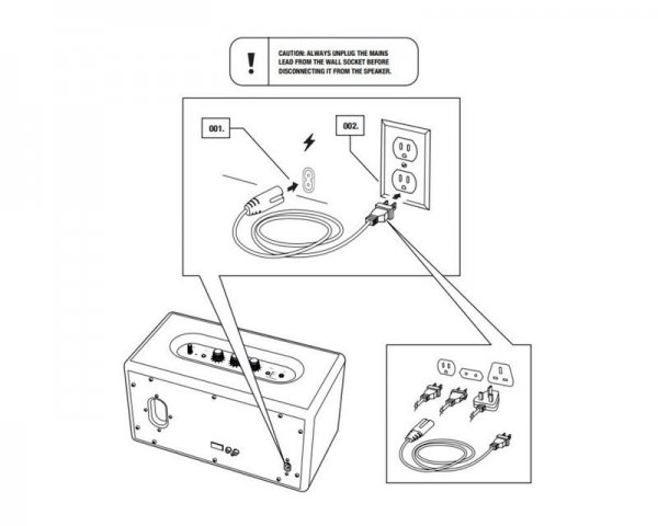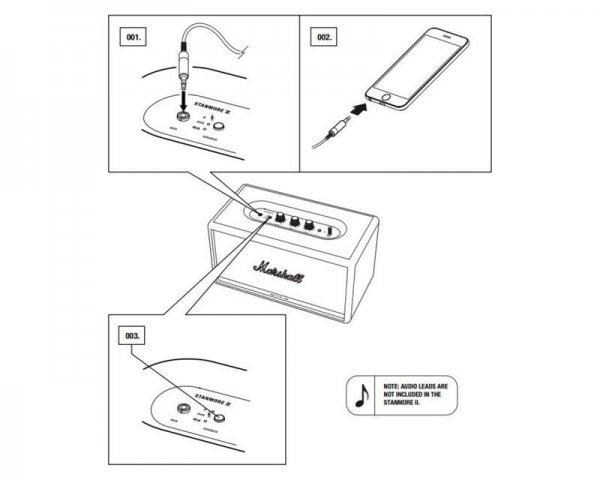 Đối với cách sử dụng loa Marshall Stanmore 2, một điều bạn cũng cần biết đó là kết nối loa với thiết bị khác thông qua đầu vào AUX. Nhìn vào hình bên dưới để thực hiện nhé.