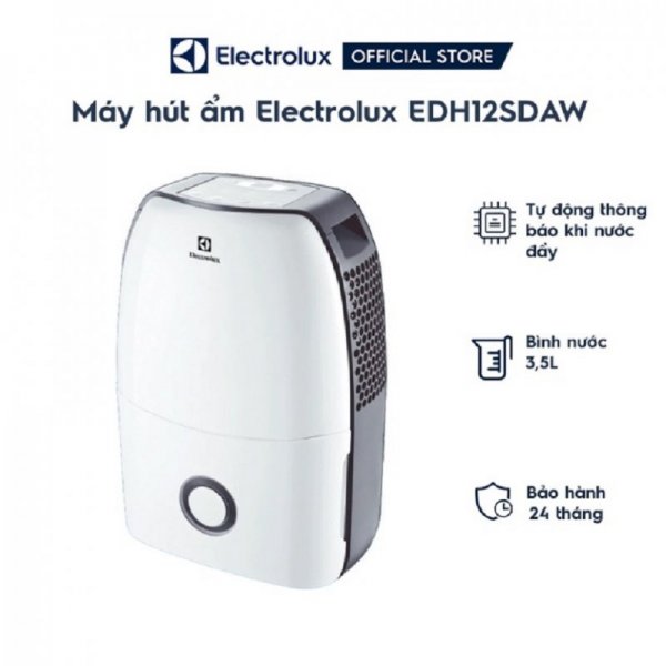 - Máy hút ẩm không khí Electrolux EDH12SDAW được trang bị nhiều tính năng tiên tiến với khả năng tự ngừng hoạt động khi khay nước đầy 3 lít.