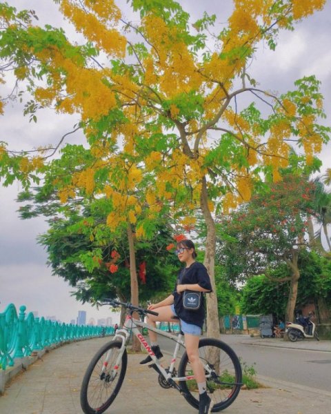 Hoa muồng hoàng yến bắt đầu nở từ đầu tháng 5, khi nở thường nở những chùm lớn, vàng rủ xuống. Ánh nắng của hè đầu mùa càng làm cho hoa muồng hoàng yến rực rỡ hơn, biến cả con đường như được dát vàng.