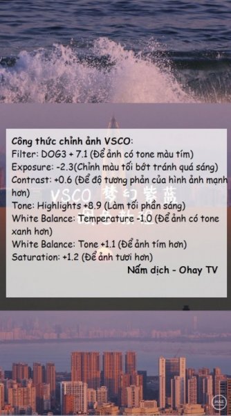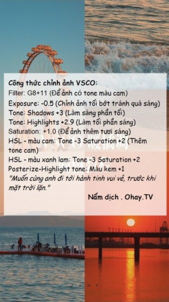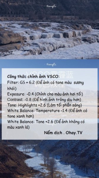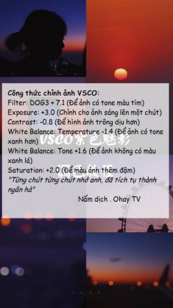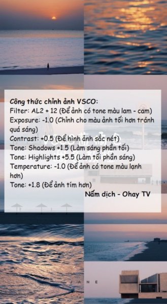 Sau đây là một số công thức chỉnh ảnh bằng VSCO - ứng dụng chỉnh ảnh có mặt trên cả hệ điều hành Android lẫn Apple. Tùy theo điều kiện sẵn có của bức ảnh, bối cảnh, địa điểm xuất hiện trong ảnh... bạn có thể xem qua các thông số sau để tùy chỉnh bức ảnh gốc được lung linh hơn.