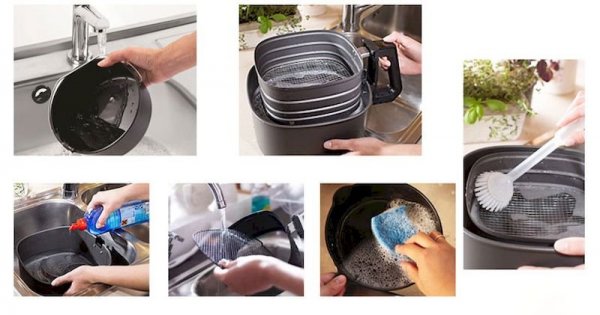 Tiếp theo, sẽ là cách làm sạch nồi chiên không dầu sau khi đã sử dụng.