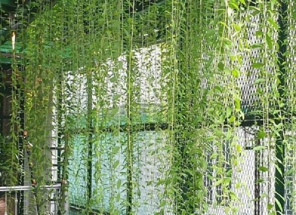Với màu xanh vô cùng mát mắt, Cúc tần Ấn Độ cũng được nhiều chủ công trình lựa chọn. Đặc điểm của loại cây này là mọc thành từng mảng, chuỗi dài và rủ xuống bên dưới tạo thành một tấm mành tự nhiên rất đẹp. Trồng loại cây này trên ban công sẽ giúp che đi nắng gắt đồng thời thanh lọc không khí cực kỳ tốt.