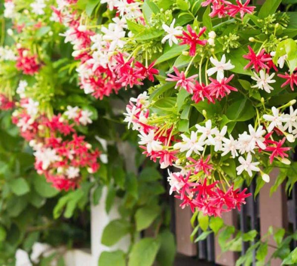 Cây hoa Giun hay còn được biết đến với cái tên là hoa Sử quân tử. Chúng là loại cây hoa leo có lá xanh và bóng được kết vô cùng uyển chuyển với nhau. Kèm theo đó là những chùm hoa màu đỏ cực kỳ nổi bật. Buổi tối, ngồi dưới giàn hoa hóng mát, bạn có thể cảm nhận được hương thơm cực kỳ dễ chịu mà hoa Giun tỏa ra khắp không gian của bạn.