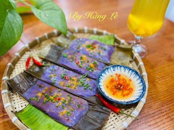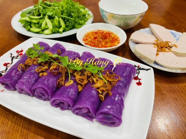 Bánh cuốn khoai lang tím nhân tôm, nấm mèo.