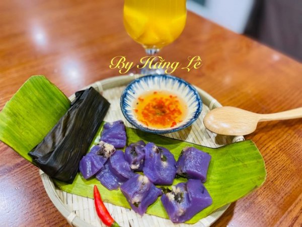 Bánh tẻ khoai lang tím nhân tôm, thịt, nấm mèo.