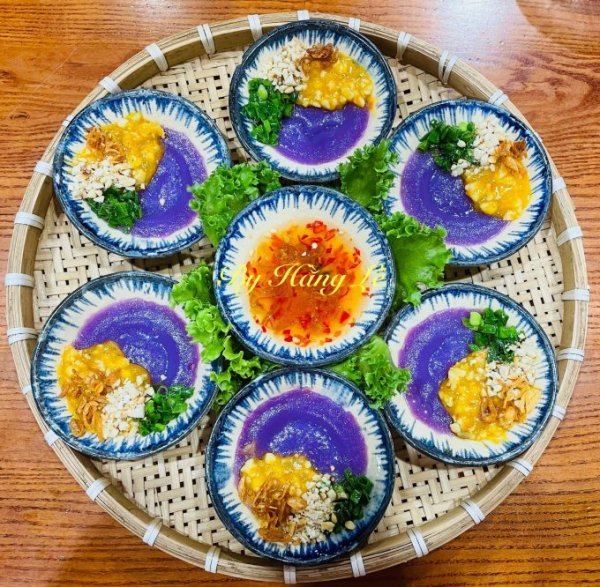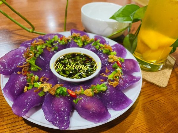 Bánh bèo khoai lang tím nhân tôm tươi.