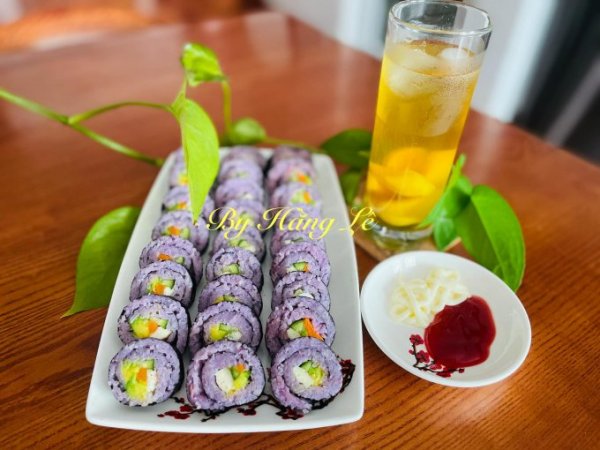 Cơm cuộn CHAY khoai lang tím: bơ 034, trứng, cà rốt, dưa leo.