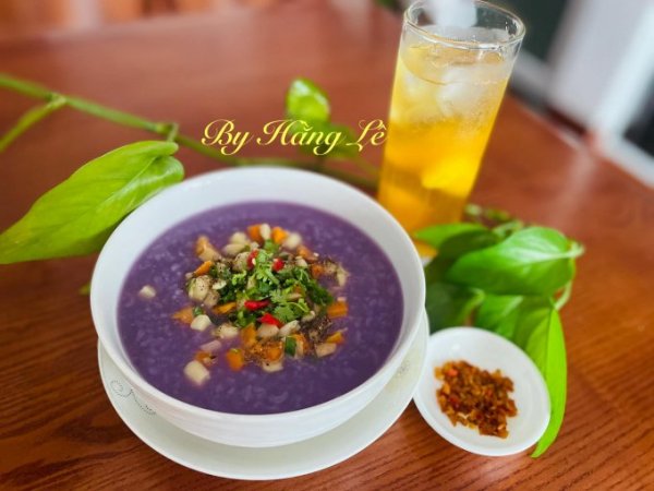 Cháo CHAY thập cẩm khoai lang tím: sen, nấm đùi gà, cà rốt.