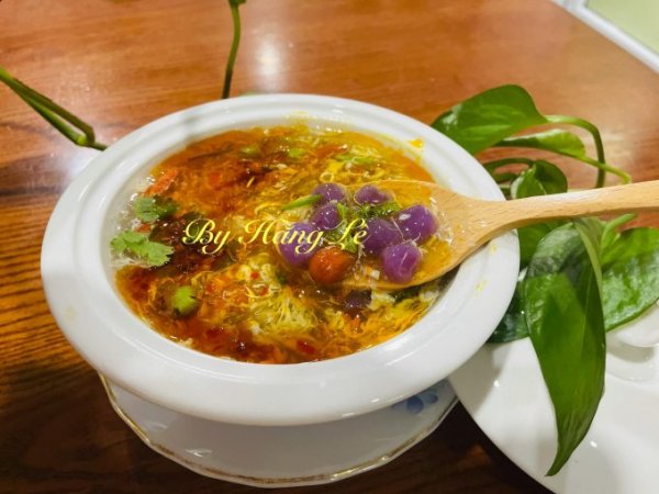 Súp tổ yến khoai lang tím cùng trứng, kỉ tử.