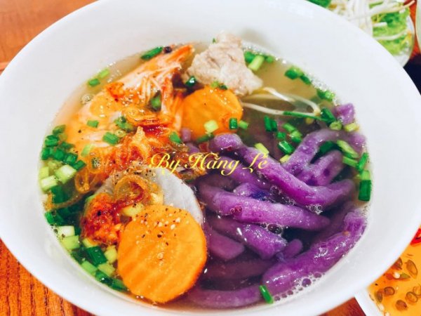 Bánh canh khoai lamg tím nấu sườn, tôm.