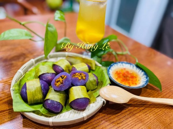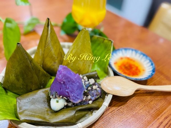 Bánh giò khoai lang tím nhân tôm, thịt, nấm mèo, trứng cút.