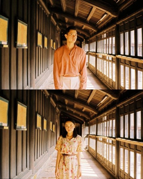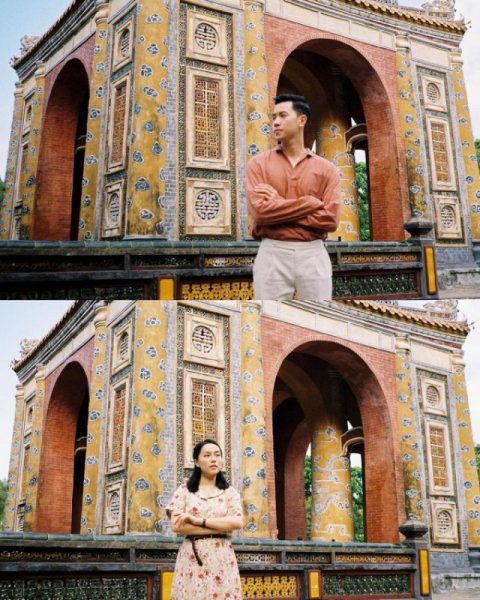 Tips chụp ảnh của hot couple Việt này nằm ở sự hài hòa giữa trang phục và bối cảnh. Ở những shoot ảnh du lịch của mình, Hà Trúc và Quang Đạt chọn tone màu không quá chói chang nhưng sáng, rạng rỡ và quan trọng hợp với bối cảnh. Có thể tham khảo cách chụp đơn giản khi hai bạn ghé thăm Huế.