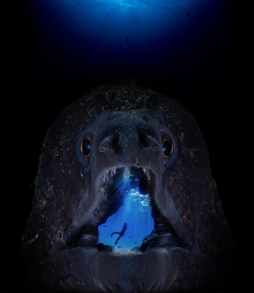 Nói đến hạng mục ứng dụng nghệ thuật ảnh kỹ thuật số dưới đại dương, Francisco "Paco" Sedano đã giành vị trí đầu tiên cho bức ảnh về một con cá chình moray.