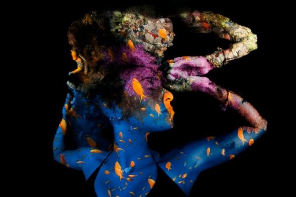 Hình ảnh một người phụ nữ phủ đầy san hô mềm, san hô ống và cá Anthias đã gây ấn tượng với ban giám khảo. Ảnh: Renata Romeo/UN World Oceans Day