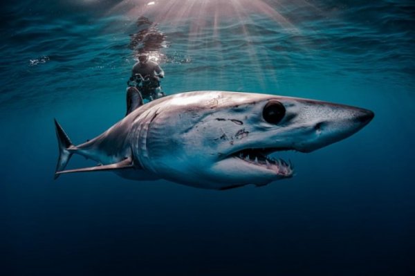 Bức ảnh đáng sợ của Evans Baudin về một con cá mập Mako vây ngắn vào lúc hoàng hôn ở Mexico xếp thứ ba trong danh mục các gương mặt đến từ biển cả vừa rồi.