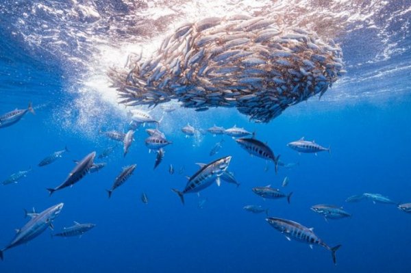 Một bức ảnh đầy nghị lực về những con cá mòi bị săn đuổi bởi một con cá marlin sọc đã mang về cho Jacopo Brunetti vị trí thứ hai cùng hạng mục.