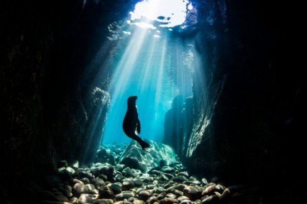 Bức ảnh chụp một chú sư tử biển chơi đùa trong hang động ở Mexico mang về cho Nur Tucker chiến thắng cao nhất trong hạng mục cảnh quan biển dưới nước.