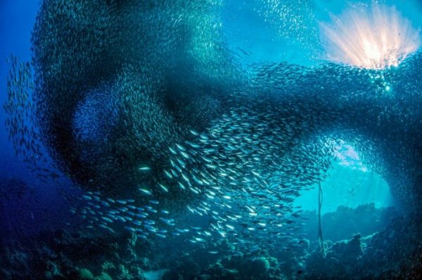 Bức ảnh huyền bí về hàng nghìn con cá mòi được chụp bởi Marchione Giacome ở Philippines đã giành được vị trí thứ hai trong hạng mục cảnh quan biển dưới nước.