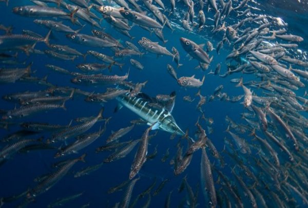 Một con cá marlin sọc săn đuổi cá mòi ở vịnh Magdalena, Mexico. Ảnh: Jacopo Brunetti/UN World Oceans Day.