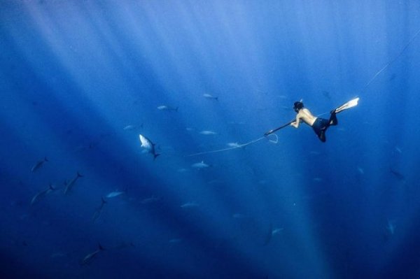 Hình ảnh một thợ lặn săn cá ngừ với một khẩu súng ngắn của Henley Spiers được xếp thứ ba trong danh mục đại dương, cuộc sống và sinh kế.