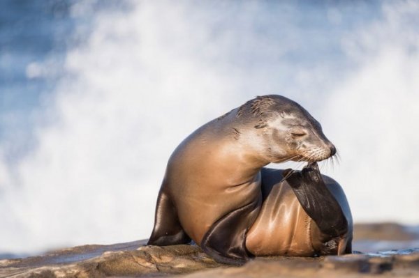 Hình ảnh chú sư tử biển California tò mò đang phơi mình dưới ánh nắng ban mai đã giúp nhiếp ảnh gia Matthew Meier được vinh danh trong hạng mục cảnh biển trên mặt nước.