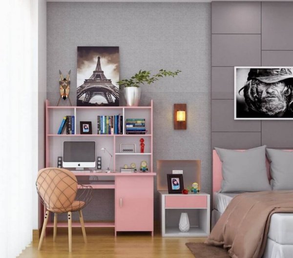 Nếu góc học tập của bạn được đặt ở nơi có khoảng trống thì bạn nên tận dụng khoảng không đó một cách tối ưu nhất. Bạn có thể đặt một bức tranh mình yêu thích hay những tấm ảnh, sticker ngộ nghĩnh đáng yêu phù hợp với tính cách của bạn. Nó sẽ tạo một không gian rộng mở đa chiều, từ đó giúp bạn có nhiều ý tưởng mới lạ độc đáo hơn cho bài học hoặc công việc của mình.