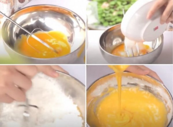 Bước 2: Nguấy đều lòng đỏ vừa tách với bơ lạt, sữa tươi, vani. Sau đó thì cho thêm Bột mì, bột ngô và bột nở vào khấy thật đều tay đến khi nào bột trong bát đã mịn thì mới dừng như vậy thì bánh mới mềm mịn.