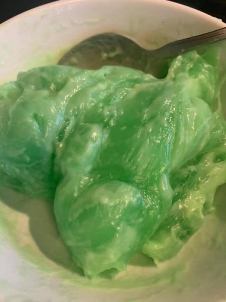 Cho đường vào nước nấu cho tan đường, xong đổ từ từ vào phần bột quậy đều tránh không bị vón cục. Chia bột đều ra 5 tô, rồi pha màu tuỳ theo sở thích.