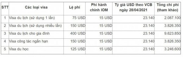 Tùy vào từng mục đích và thời điểm xin visa, mức lệ phí sẽ có sự khác nhau. Bạn có thể tham khảo các trường hợp dưới đây: