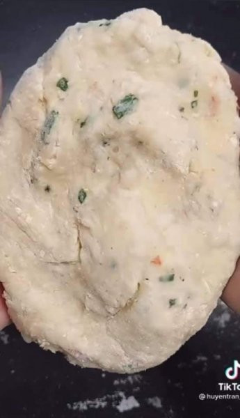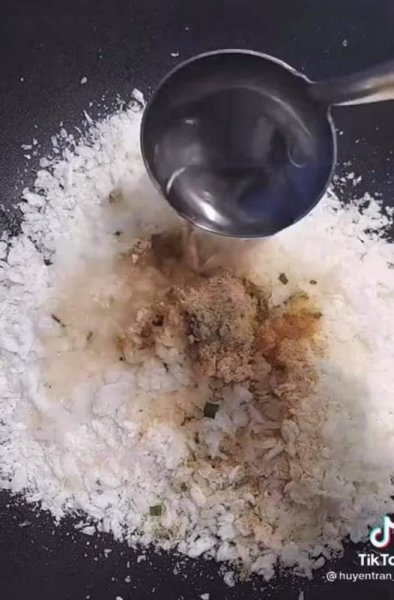 - Trộn cháo, gia vị và một vá nước. Bạn nhắm chừng mức nước sao cho bột có độ sánh, chắc tay nhất định