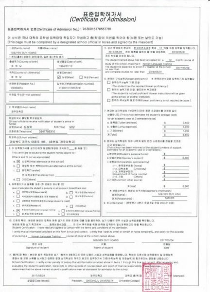 Đồng thời mã code đã được trường hoàn thiện xin cấp visa du học Hàn Quốc tại Cục Xuất nhập cảnh nơi trường đặt học xá.