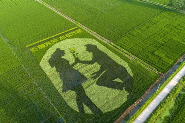 Một tác phẩm nghệ thuật trên đồng lúa ở Giang Tô, Trung Quốc mừng ngày Thất Tịch.