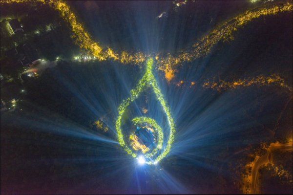 Cung điện Meiling được chiếu sáng cho đêm hội Qixi - ngày Thất Tịch ở Trung Quốc.
