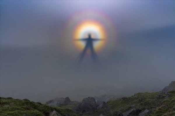 Khi leo núi trên đỉnh cao nhất Brocken của dãy núi Harz của Đức, du khách hay nhìn thấy một hình bóng ma quái xuất hiện từ màn sương với một vòng ánh sáng quanh đầu. Tuy nhiên bóng ma này là cái bóng của chính họ. Nguyên nhân tạo nên ảo ảnh này là do ánh sáng Mặt Trời từ phía sau chiếu lên người quan sát khiến bóng của họ "đổ" lên mây hoặc sương mù phía trước, ở vĩ độ cao. Đúng lúc đó, cầu vồng xuất hiện khiến cái bóng được bao bọc trong một vầng hào quang nhiều màu sắc.