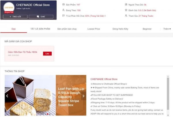 Không giống những Shop khác bán đầy đủ mọi loại nguyên vật liệu, Chefmade chuyên về các loại khuôn bánh như sandwich, bread, bánh Trung Thu, pizza,… Bạn sẽ dễ dàng tìm thấy ngay một mold đáng yêu ở Shop đó nha!