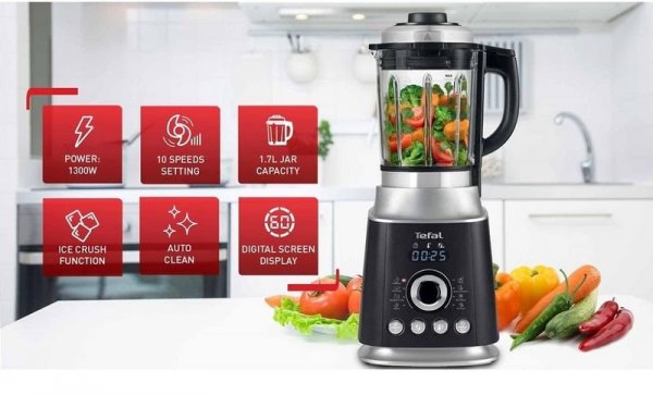 Thiết bị máy làm sữa hạt Tefal BL985 nổi bật với 5 chương trình xay thực phẩm nóng bao gồm: nấu súp, làm mứt trái cây làm nước sốt và làm sữa hạt. Cùng với đó là 5 chương trình xay thực phẩm lạnh bao gồm xay đá, làm smoothie, xay hạt, làm kem đá và sữa lắc. Ngoài ra, máy làm sữa hạt Tefal BL985 còn có 2 cối thủy tinh: một cối chuyên dùng để xay sinh tố và một cối chuyên dùng để nấu, làm sữa hạt. Như vậy, là bạn có thể thỏa sức sáng tạo chế biến những món ăn, thức uống chỉ với 1 chiếc máy mà thôi.