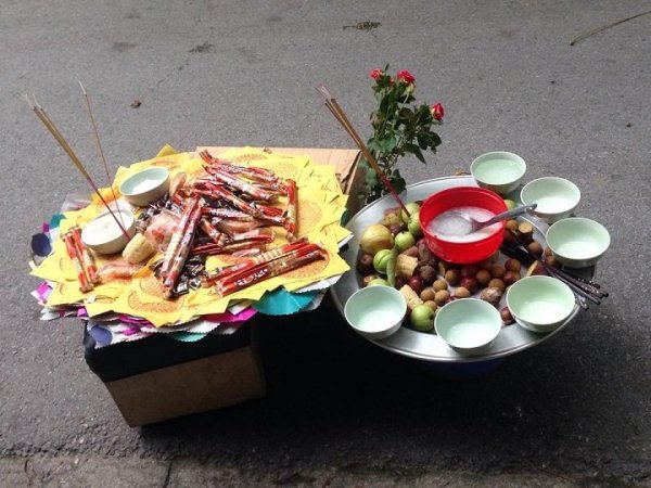 Mâm cúng chúng sinh thường được bày ở ngoài trời, trước cửa chính của ngôi nhà.