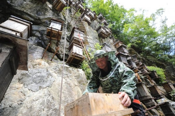 Bức tường tổ ong (the wall of hives) dựng đứng bên núi này thuộc Khu bảo tồn Thiên nhiên Shennongjia, tỉnh Hồ Bắc của Trung Quốc. Đây là một trong những khu bảo tồn cuối cùng của Trung Quốc dành cho loài ong rừng bản địa.