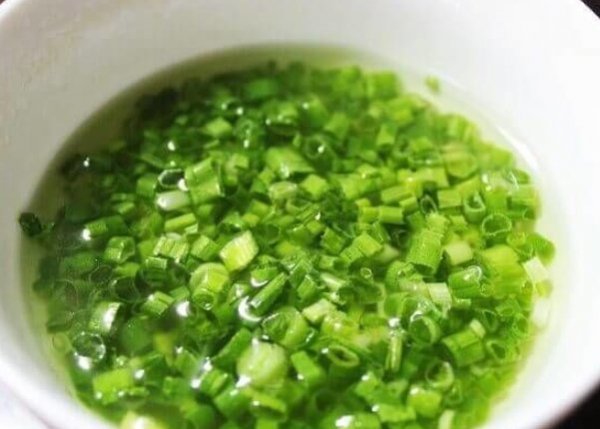 Rửa sạch và cắt nhỏ hành lá. Sau khi đun chảy khoảng 70g bơ thực vật thì bỏ hành vào. Khi hành vừa chín, cần tắt bếp và đổ ra bát nhanh để hành không bị biến màu, ảnh hưởng đến mùi vị.