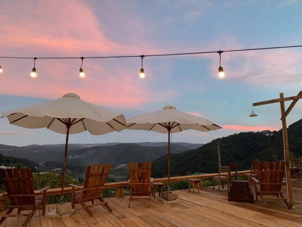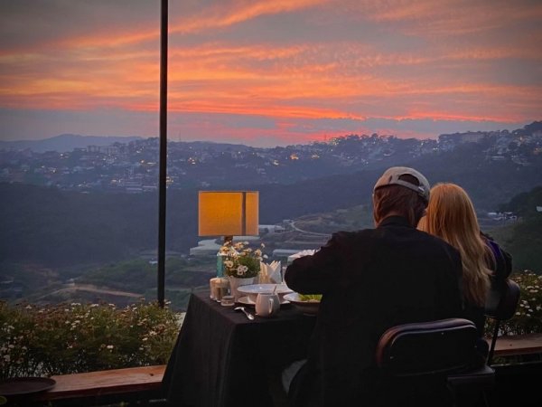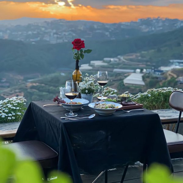 Rosetta Chillout Dalat phủ kín lối đi bằng cúc họa mi, sương giăng ngoài hên nhà, không gian yên tĩnh mang đậm thơ. Trong khung cảnh hoàng hôn khói sương tỏa mờ mờ, còn gì tuyệt vời hơn khi được ngồi thưởng thức bữa tối nơi đây cùng người thương?
