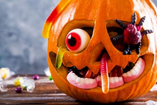 Tăng độ quái dị cùng với bí đỏ và kẹo dẻo. (Ảnh: workingmamabear.com)