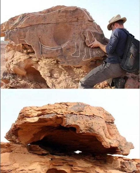 Theo Daily Mail, một phù điêu lạc đà có kích cỡ bằng con người, khá nổi tiếng tại đây đã tiết lộ những manh mối quý giá này. Tác phẩm điêu khắc từng được đánh giá là xuất hiện từ thời đại đồ sắt khoảng 2.000 năm trước. Tuy nhiên, sau khi giám định lại, kết quả cho thấy "độ tuổi" của con "lạc đà" này 8.000 năm.