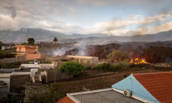 Người đứng đầu Dịch vụ cấp cứu núi lửa quần đảo Canary cho biết, hiện tại tốc độ di chuyển của dòng dung nham đã giảm còn 120 m/h. Dự kiến, dòng dung nham này sẽ tới Đại Tây Dương vào 22/9. Ảnh: Telegraaf.