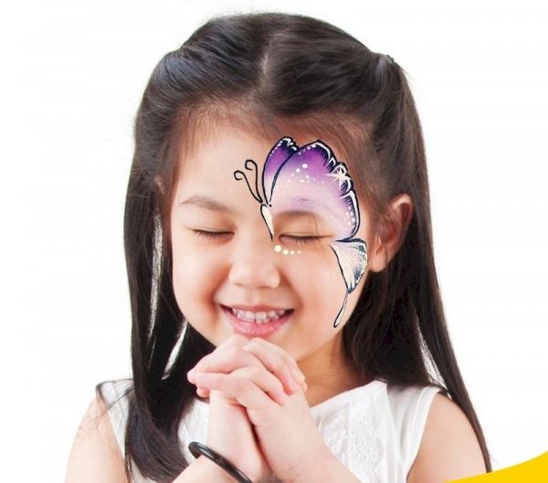Những chú bướm với đủ hình thù, màu sắc khác nhau chính là biểu tượng ngọt ngào của những cô nàng đáng yêu. Nếu đang chọn hình để vẽ mặt Halloween cho bé gái mà bỏ qua gợi ý này thì quá thiếu sót rồi đó mẹ nhé. Đơn giản và nhẹ nhàng, mẹ mong muốn con sẽ luôn xinh đẹp và tỏa sáng để thật vui vẻ với cuộc sống này.
