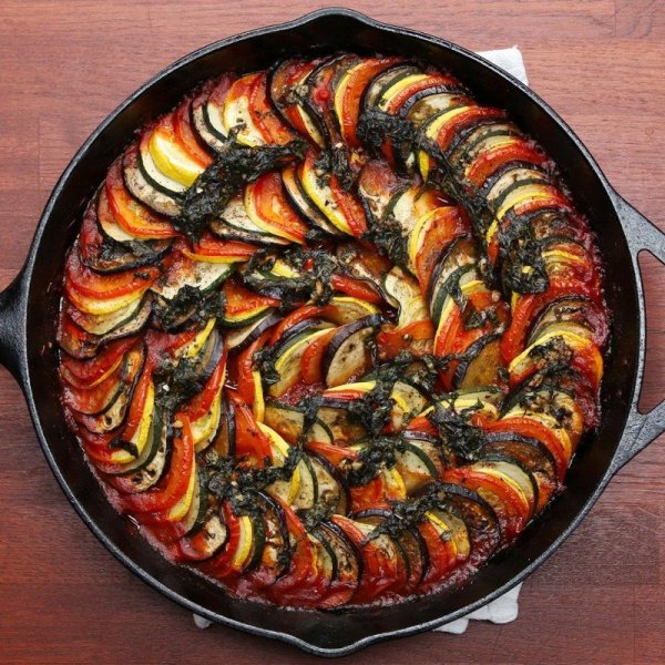 - "Bạn nói đúng, rằng Ratatouille là món hầm rau rẻ tiền, đó là lý do ban đầu nó chỉ loanh quanh ở phạm vi nông trại. Nhưng có hai bí quyết để làm món ratatouille ngon: Đảm bảo rằng bạn sử dụng đủ muối để hành tây, mọi loại rau trong món ratatouille cổ điển đều đặc biệt thấm muối. Điều thứ hai là sử dụng một lượng lớn các loại thảo mộc tươi như ngò tây, cỏ xạ hương và lá oregano (và tôi sẽ cho cả ngải giấm và/hoặc táo tây) với số lượng vừa phải. Chúng sẽ làm ra món Ratatouille thực sự tuyệt vời đấy".