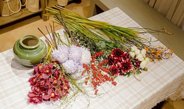 Các loại nguyên liệu và dụng cụ cần thiết để cắm hoa gồm: