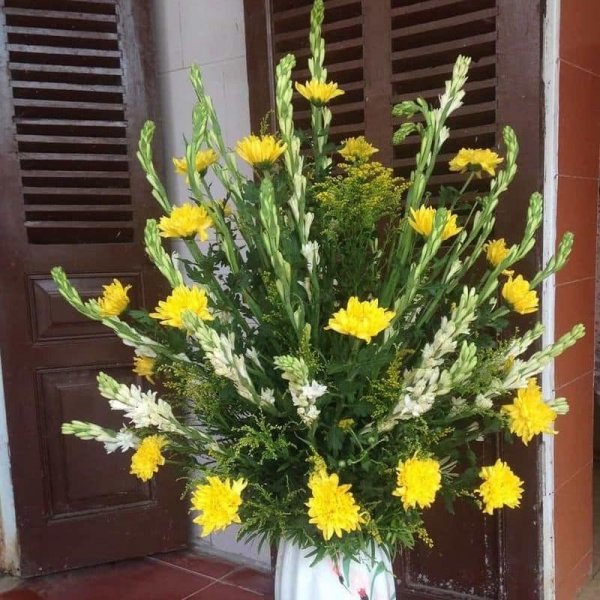 Kết hợp hoa cúc với hoa huệ cũng là một ý tưởng vô cùng tuyệt vời đấy (ảnh: pinterest.com)